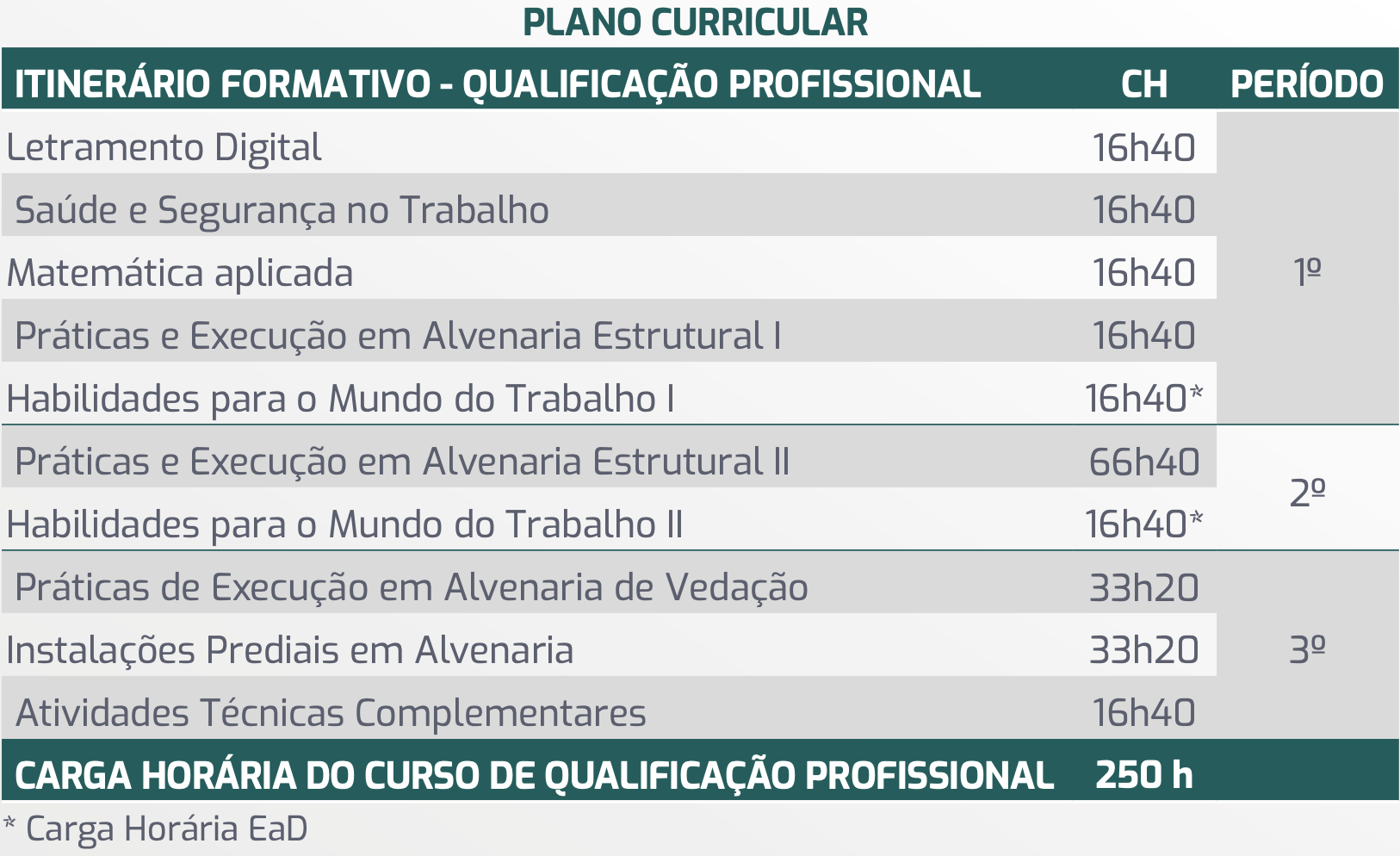 Desenvolvimento de habilidades para execução de serviços de alvenaria estrutural, incluindo a interpretação de projetos arquitetônicos, preparo de argamassas, assentamento de blocos e tijolos, alinhamento e prumo das paredes, respeitando normas de segurança, qualidade e sustentabilidade. Competências sobre resistência de materiais, ergonomia no trabalho e técnicas modernas de construção civil também estão dentro do quadro de habilidades.