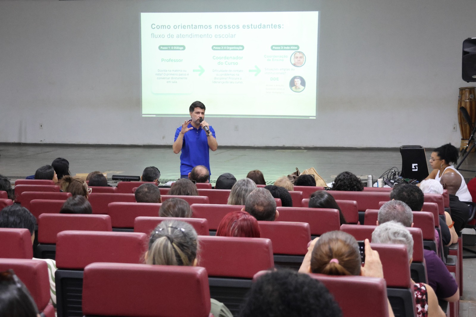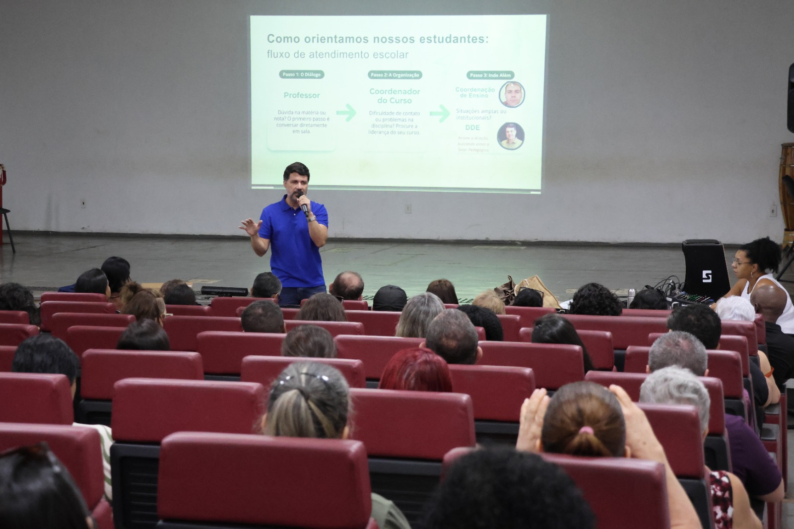 Aproveitando a movimentação no campus, a Diretoria de Desenvolvimento Educacional e o NAPNE reuniram pais e responsáveis dos novos alunos para um diálogo sobre a trajetória acadêmica e o suporte inclusivo oferecido pela instituição. O encerramento ficou por conta do talento dos estudantes do projeto “Musicalidades”, que celebraram o encontro entre escola e família.