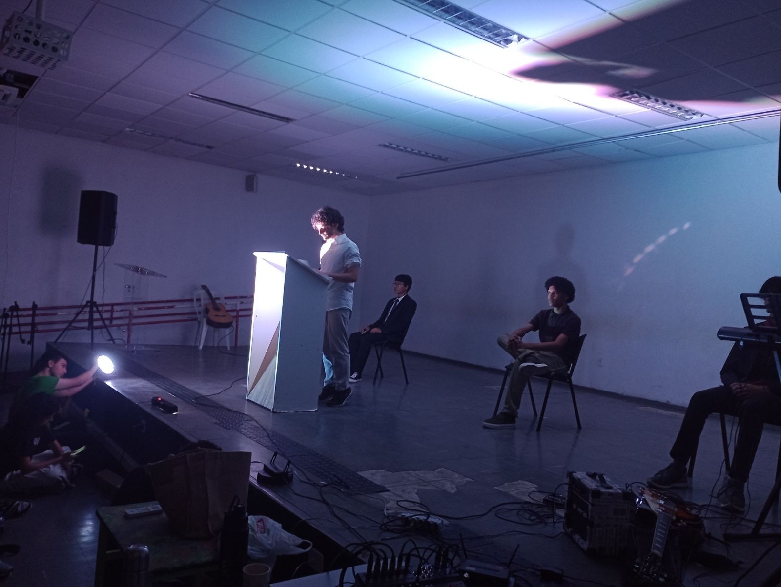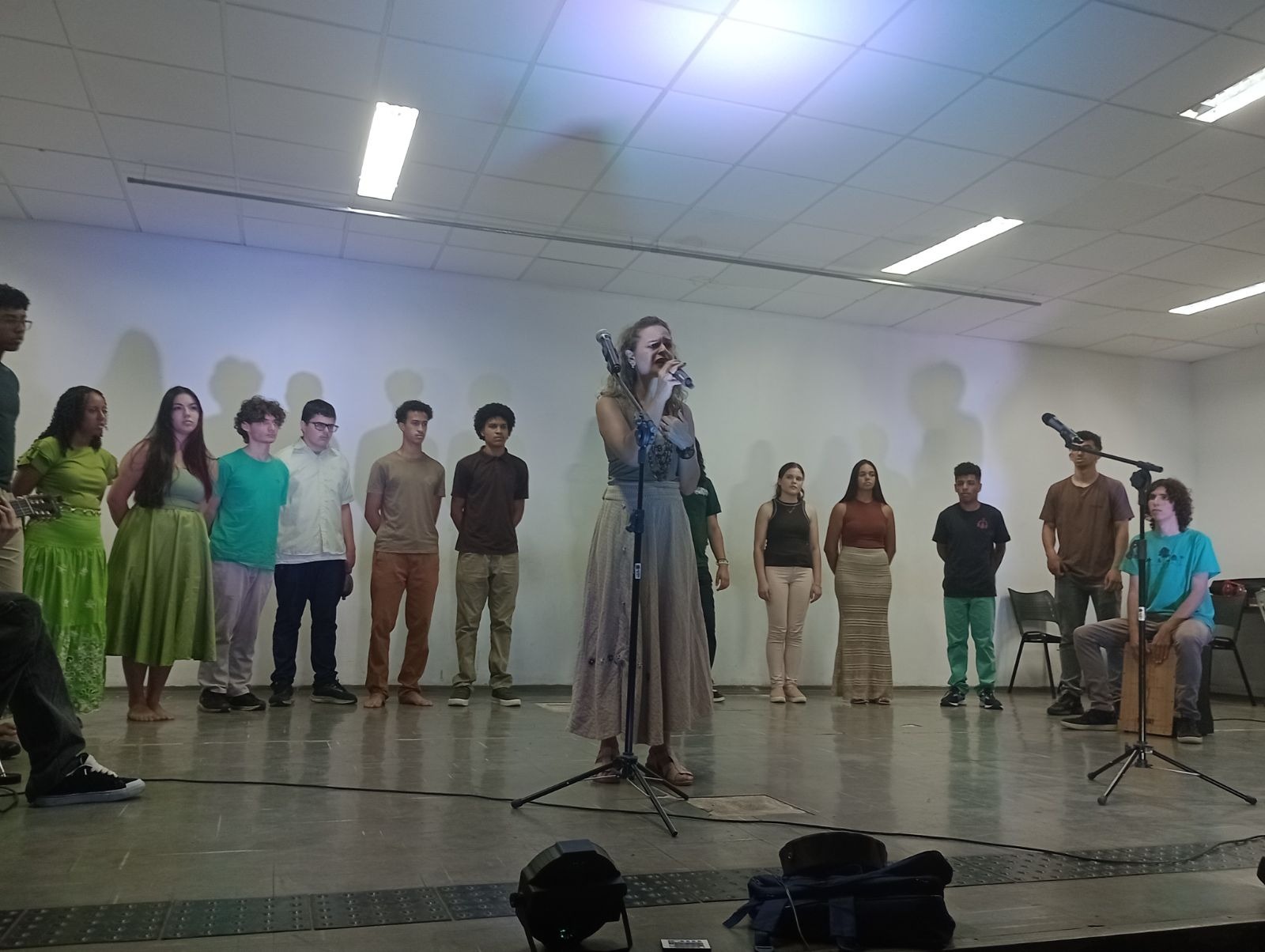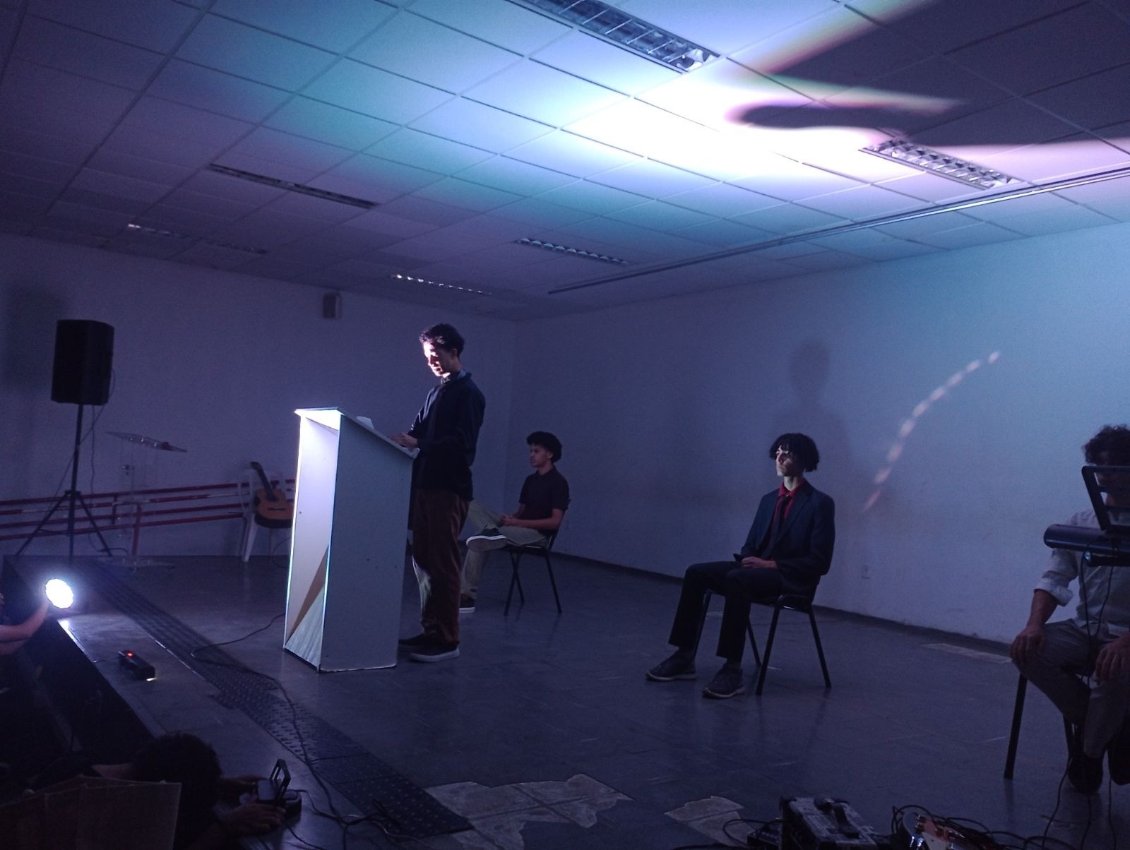 O aluno Lucas interpretou “O Canto das Três Raças”, provocando um debate sobre o encontro violento entre culturas na formação do Brasil. Complementando a mensagem, o monitor Arthur (Poéticas) reforçou a necessidade de reconhecer as desigualdades raciais para transformá-las.