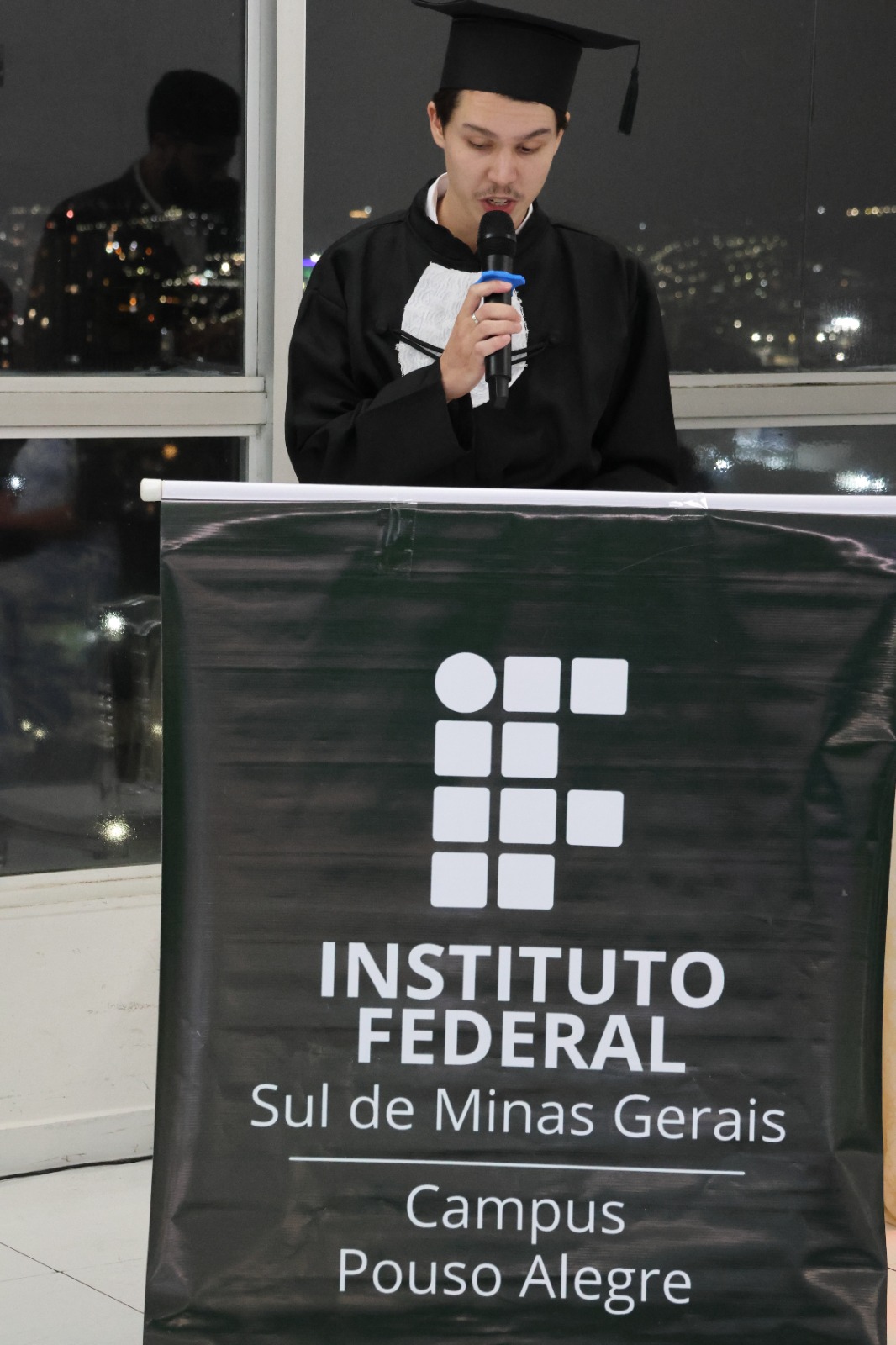 Em um discurso emocionado, o formando Vinícius Mendonça, compartilhou as experiências vividas ao longo dos três anos no IF. Ele enfatizou que a celebração vai muito além da entrega de diplomas, ressaltando a importância das vivências compartilhadas, dos desafios enfrentados em conjunto e dos laços formados durante a trajetória acadêmica. “Colecionamos risadas, choros, mas estamos aqui e um novo caminho se abre para nós”.