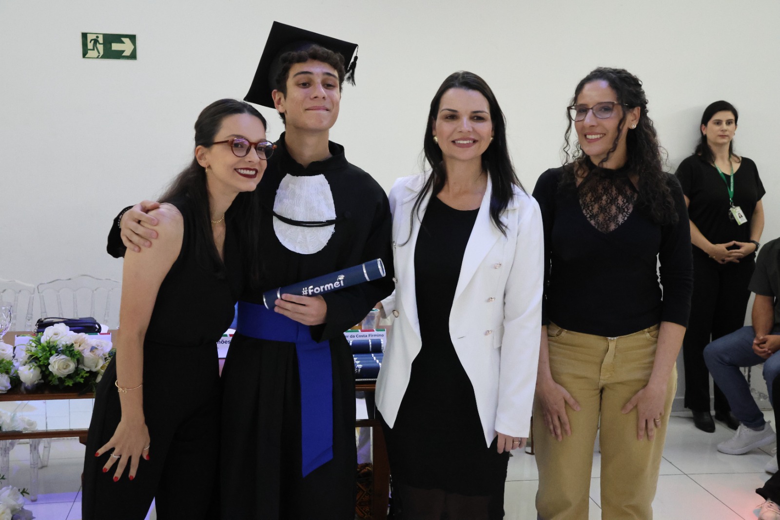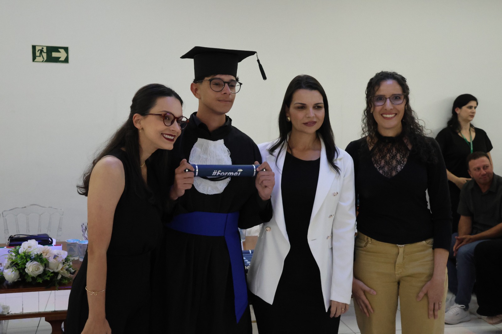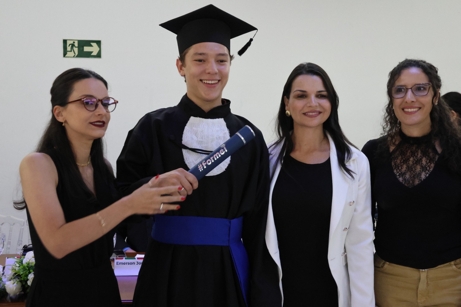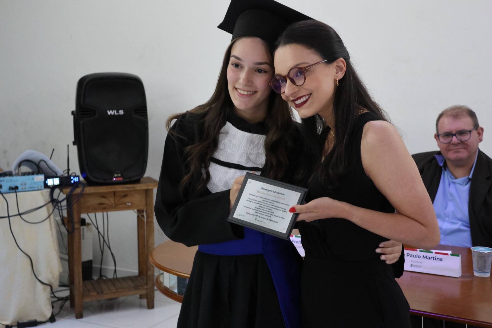 O Paraninfo, professor Emerson José Simões da Silva, emocionou-se ao falar sobre a jornada de seus alunos. Ele destacou que a educação é um esforço coletivo e que cada estudante presente na cerimônia se esforçou para superar desafios, trazendo à tona o espírito de colaboração que permeia o ambiente educacional. Ao final de sua fala, convidou os formandos a buscarem constantemente a excelência em tudo o que fizerem, reforçando o papel transformador da educação na vida de cada um.
