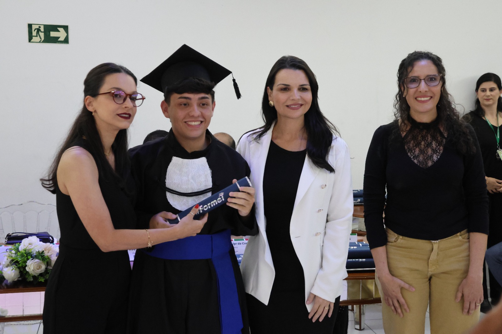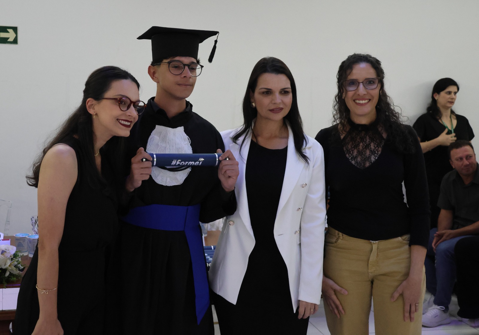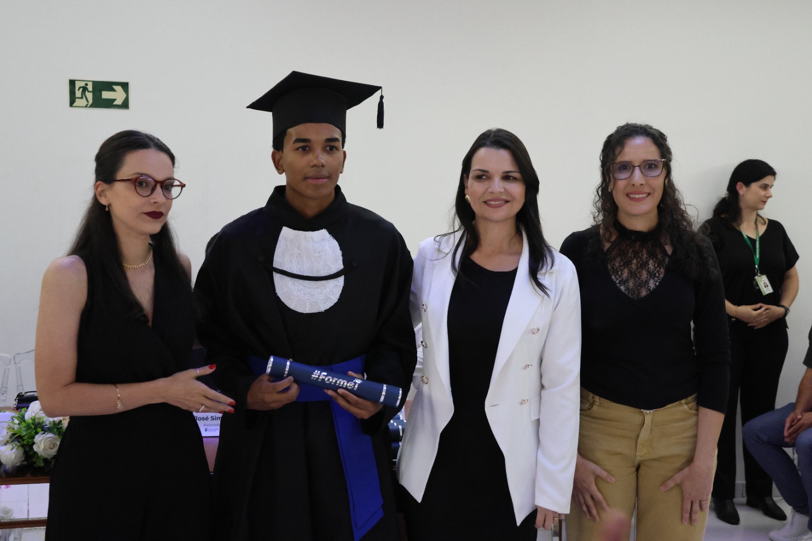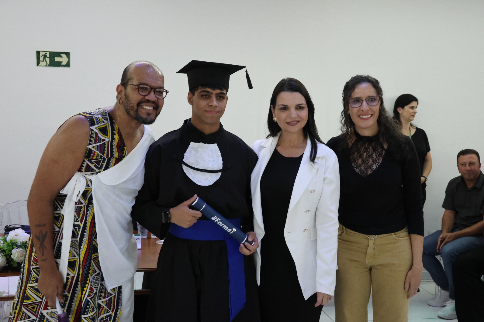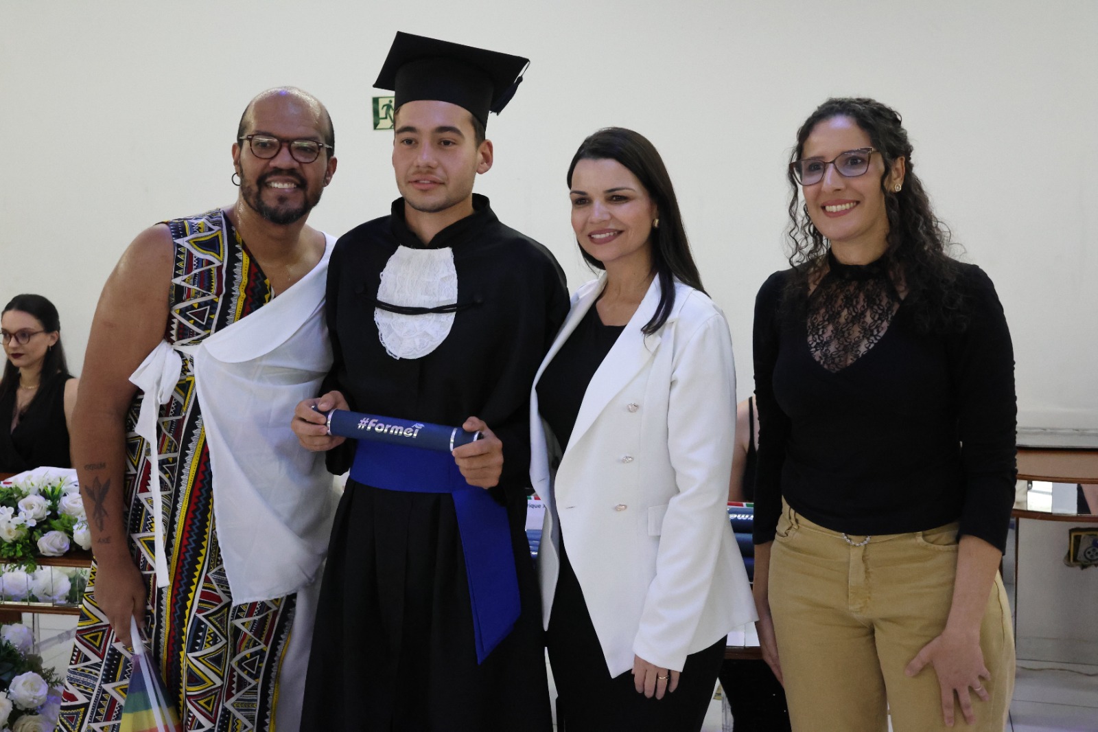 O Paraninfo, professor Emerson José Simões da Silva, emocionou-se ao falar sobre a jornada de seus alunos. Ele destacou que a educação é um esforço coletivo e que cada estudante presente na cerimônia se esforçou para superar desafios, trazendo à tona o espírito de colaboração que permeia o ambiente educacional. Ao final de sua fala, convidou os formandos a buscarem constantemente a excelência em tudo o que fizerem, reforçando o papel transformador da educação na vida de cada um.